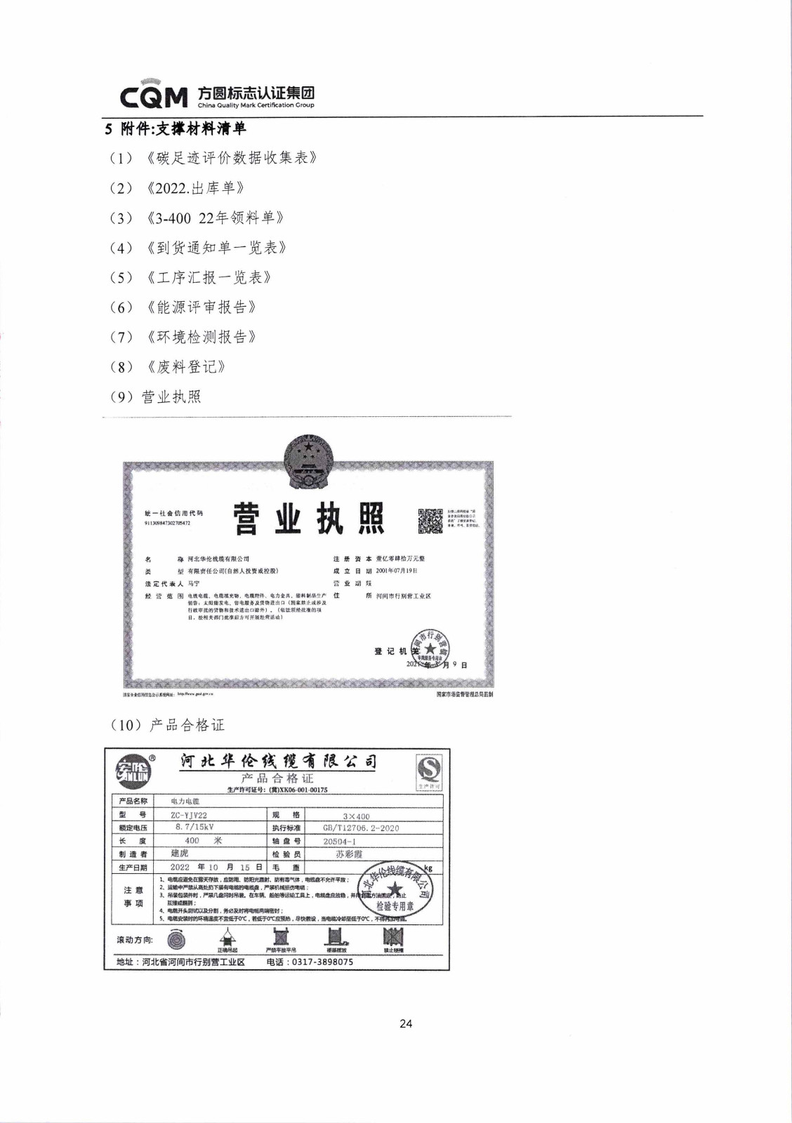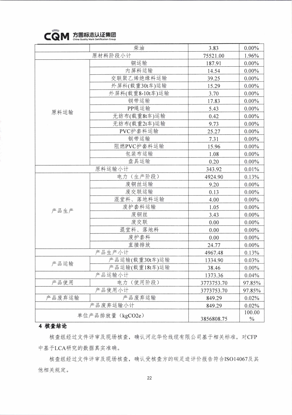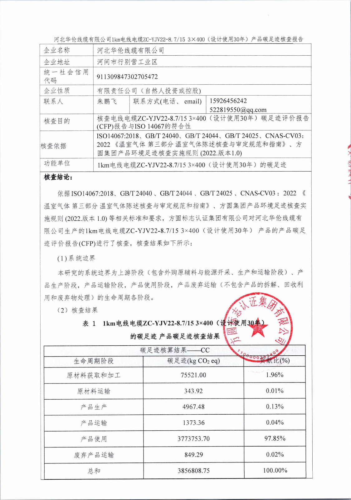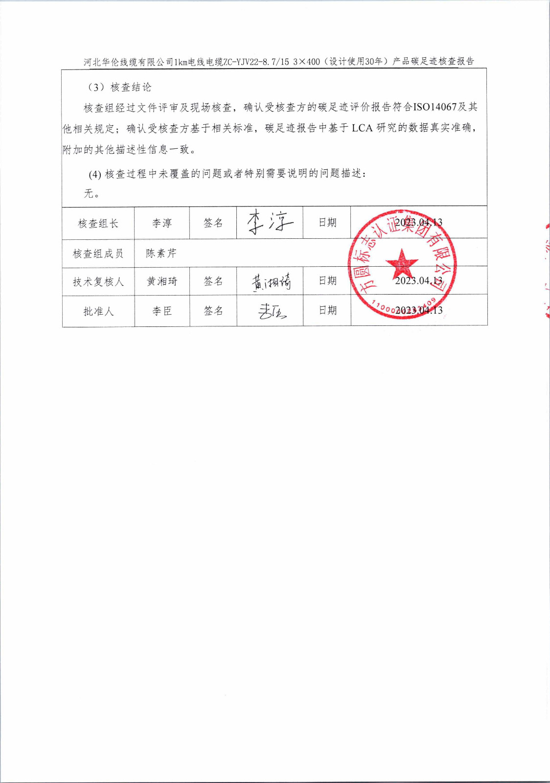 河北華倫線纜有限公司1km電線電纜碳足跡報告(蓋章)